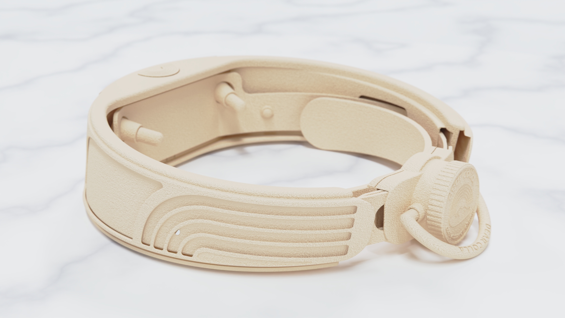 Each part of this collar is printed individually—fifteen total pieces, including the adjustable ratchet strap and the tension knob that tightens the fit with satisfying clicks. Every completed print gets cleaned, tested, and snapped into place as the mechanism slowly takes shape. Once all 15 parts are finished, they come together into a fully adjustable, engineered-for-comfort dog collar.